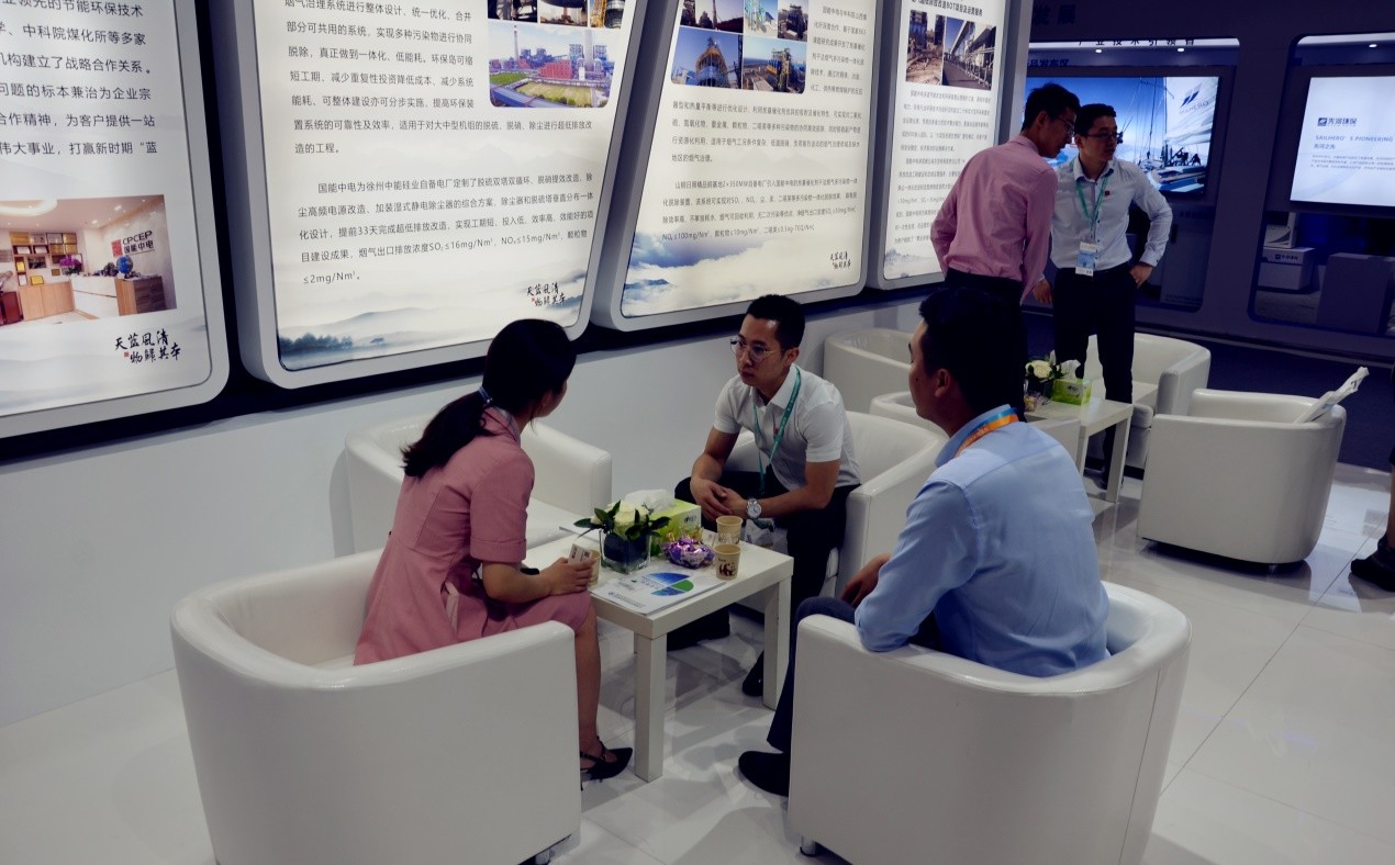 國能中電作為節(jié)能環(huán)保行業(yè)的領(lǐng)軍企業(yè),多年來致力于工業(yè)煙氣治理、超凈火力發(fā)電、生物質(zhì)能源利用、綠色金融服務(wù)和環(huán)保新材料研發(fā)等領(lǐng)域。在此次展會中,國能中電集中、全面、生動地展示了公司煙氣污染物協(xié)同脫除系統(tǒng)(SRS)—環(huán)保島、炭基催化劑干法煙氣多污染物一體化脫除技術(shù)、余熱閃蒸自結(jié)晶“3C-MED”脫硫廢水零排放技術(shù)、激光熔覆技術(shù)、環(huán)保浸金劑技術(shù)等多項優(yōu)勢核心技術(shù),以及環(huán)保裝置第三方運維、環(huán)保核心設(shè)備生產(chǎn)等專業(yè)服務(wù)。